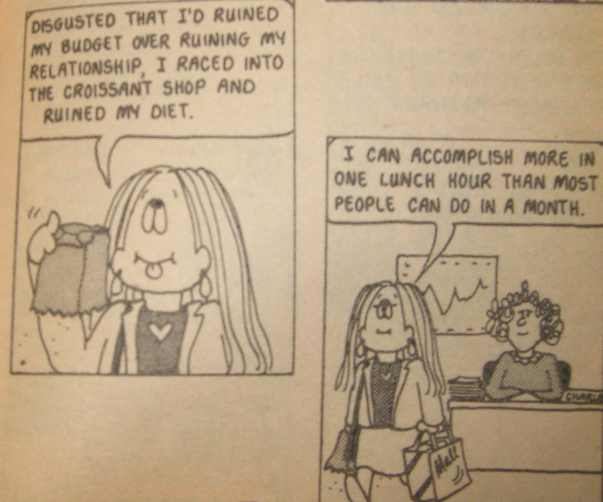 But, to quote the hilarious cartoonist Cathy Guisewite on the subjects of hectic overspending and ruining diets,