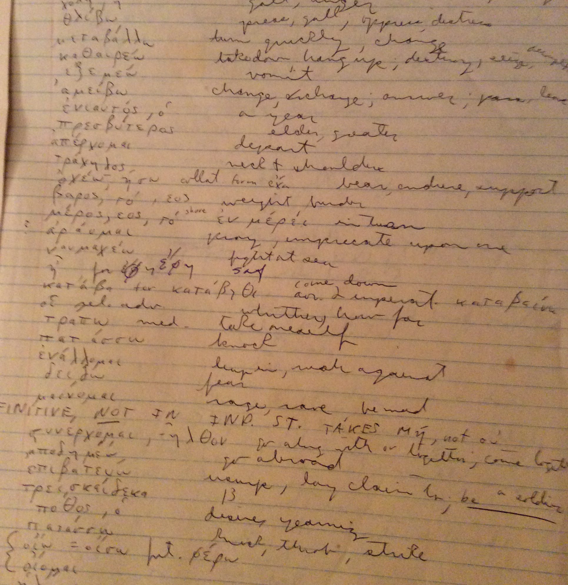 Greek notebook Published August 18, 2017 at 1931 × 1989 in My Experience with “Ladies’ Greek,” in the Free-Wheeling 1970s Next → Greek vocabulary list from my Frogs binder